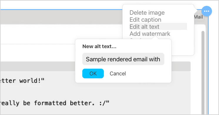 Note: If you’re unclear about what should go into an alt text description, take a look at this resource from the American Foundation for the Blind, and this resource from Harvard’s Digital Accessibility Services.